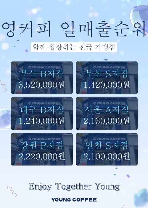 영커피와 함께 할 가맹점 점주님을 모집합니다.